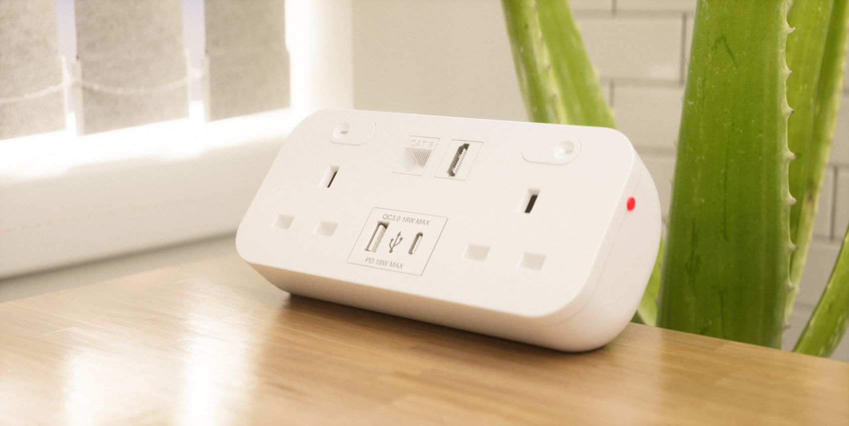 The Icon Desktop Module has been designed with an angled face surface to allow easy access to the sockets and ports, and is fixed securely to the desktop using the G clamp supplied with the product. The Icon Desktop Module also includes resettable thermal fuses and complies with the BS6396:2022 standard.