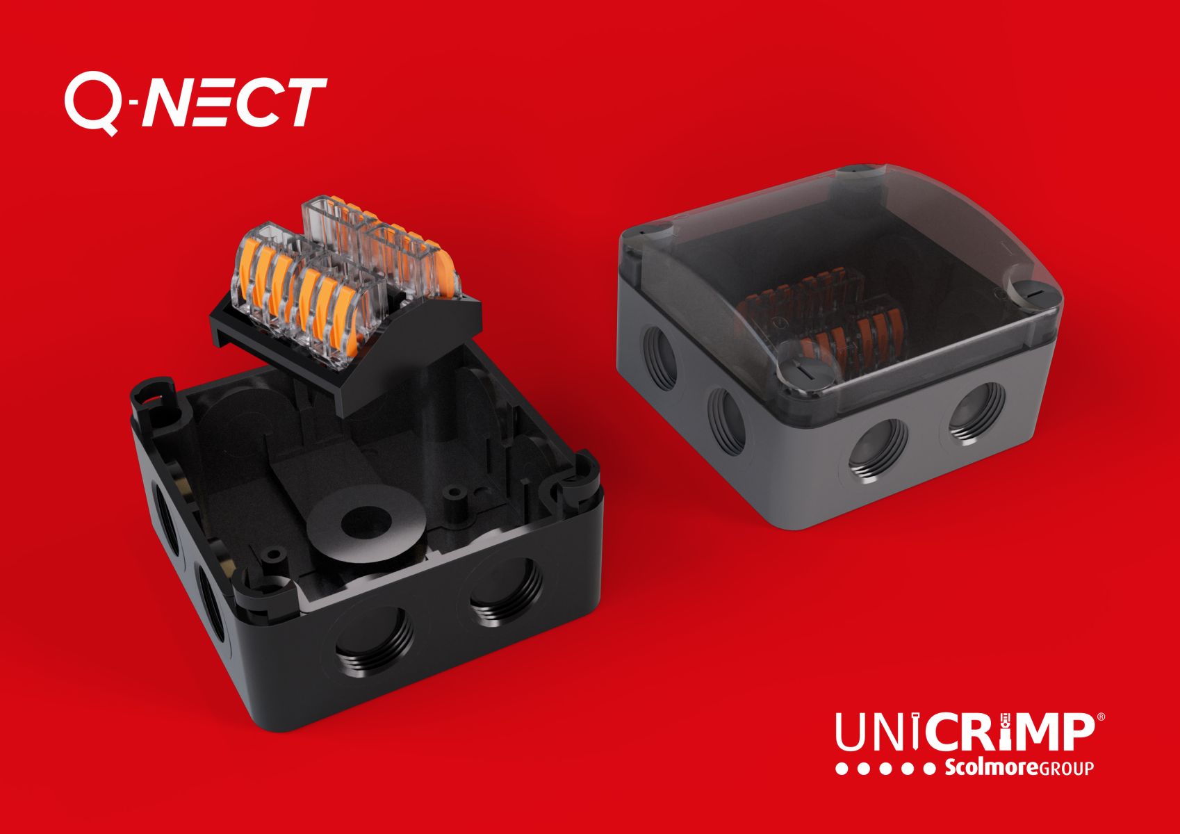 Unicrimp, part of the Scolmore Group of companies, continues to expand its Q-Nect range of lever connectors and junction boxes. The latest additions to the range are IP66-rated, weatherproof junction boxes with semi-transparent lids. The addition of the semi-transparent lid takes the IP Box to the next level, allowing you to see the inside connections without compromising the integrity of the enclosure.
